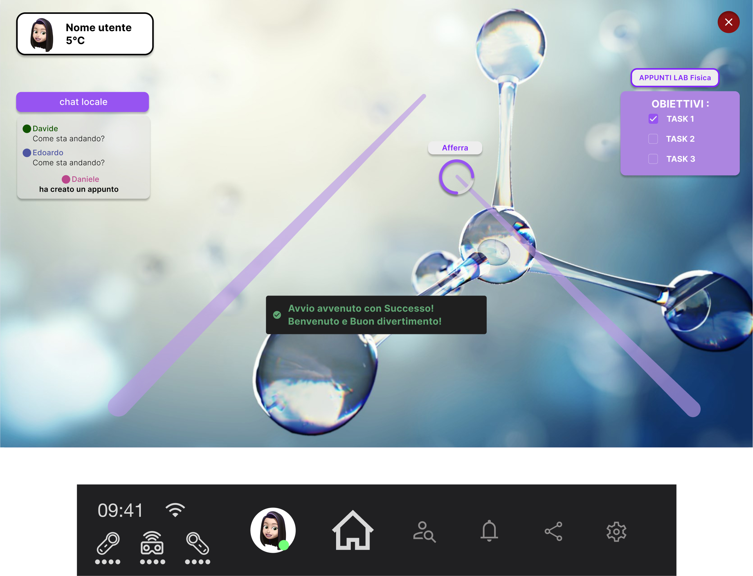 Il nostro progetto di ricerca si concentra sullo sviluppo di un sistema di realtà virtuale dedicato all’educazione scolastica, basato su una versione modificata del sistema operativo Oculus. Questo sistema educativo consente agli studenti di seguire percorsi formativi attraverso simulatori e spazi virtuali progettati per l’apprendimento.